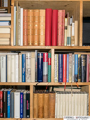 Historisch-Biographisches .:. Lexikon der Schweiz Türler, Heinrich u.a. [Hrsg.], Historisch-Biographisches Lexikon der Schweiz. Neuenburg: Administration des HBLS, 1921-1934. 8 Bände mit Faksimiles, Abbildungen und Karten. Leinen mit Goldprägung (Bände 5 und 6 neu eingebunden - ohne Beschriftung). 4to. * 1. A - Basel. 1921. XII, 600 Seiten; 2. Basel - Egnach. 1924. VIII, 792 Seiten; 3. Egolf - Gütingen. 1926. VIII, 792 Seiten; 4. Güttingen - Mailand. 1927. VIII, 800 Seiten; 5. Mailand - Saint Didler. 1929. VIII, 788 Seiten; 6. Saint Gelin - Tingry. 1931. VIII, 792 Seiten; 7: Tinguely - Zyro. 1934. XV, 788 Seiten; 8: Supplement nebst systematischem Titelverzeichnis der vollständigen Publikation. 1934. VIII, 205, XIII Seiten. - Schwache Gebrauchsspuren. Einbände unterschiedlich in den Rottönen, z.T. etwas lichtrandig / gebräunt, mässig berieben, fleckig und bestossen. Schnitt schwach stockfleckig. Band 1 mit Stempel auf dem Titelblatt, hintere Rückenkante unten aufgeplatzt. Historisch-Biographisches | Lexika | Dictionary | Helvetica | Schweiz https://comenius-antiquariat.ch/buch/154528.html Bestellnummer: 154528 CHF 350.00 (ca. EUR 339.5)  |  |
